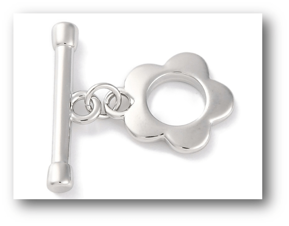 These are a top-quality toggle clasp. They have a long-lasting platinum plating over brass that is lead free, nickel free and cadmium free. The flower is about 20mm and the bar is 19x6mm. Sold individually.
