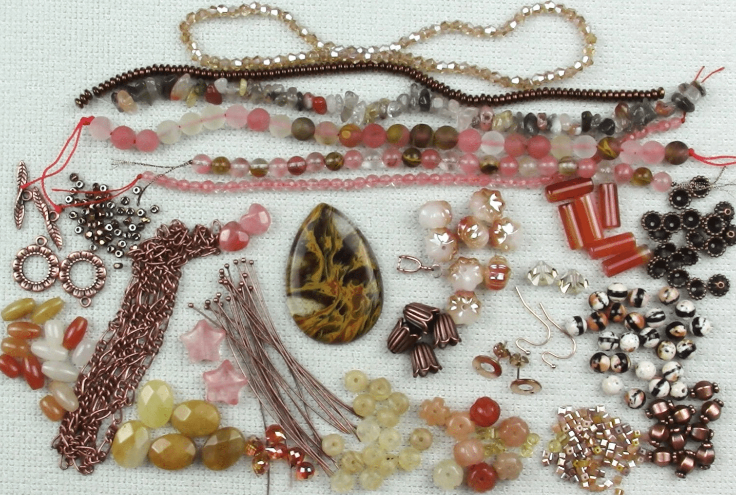 Every other month, beginning the first week of June, your package will arrive at your Doorstep or Mailbox. Each box will be filled with semi-precious gemstones, crystals, glass, and other beads. There will also be a selection of high-quality findings, stringing materials, and other awesome stuff to help you satisfy your cravings for cool new jewelry-making stuff.