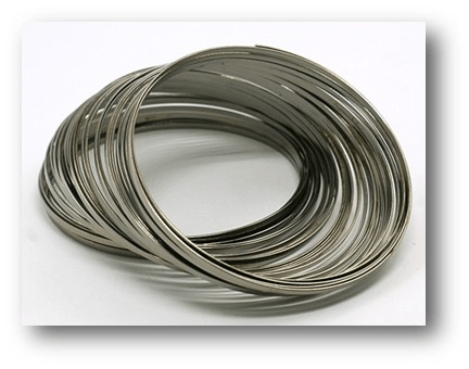 Hard to find Flat Memory Wire. This is a bracelet size 55mm in diameter and the wire is 1.5mm flat. Perfect for designs where you don’t want the beads to roll around the wire. Sold in sets of 10 loops to a set.